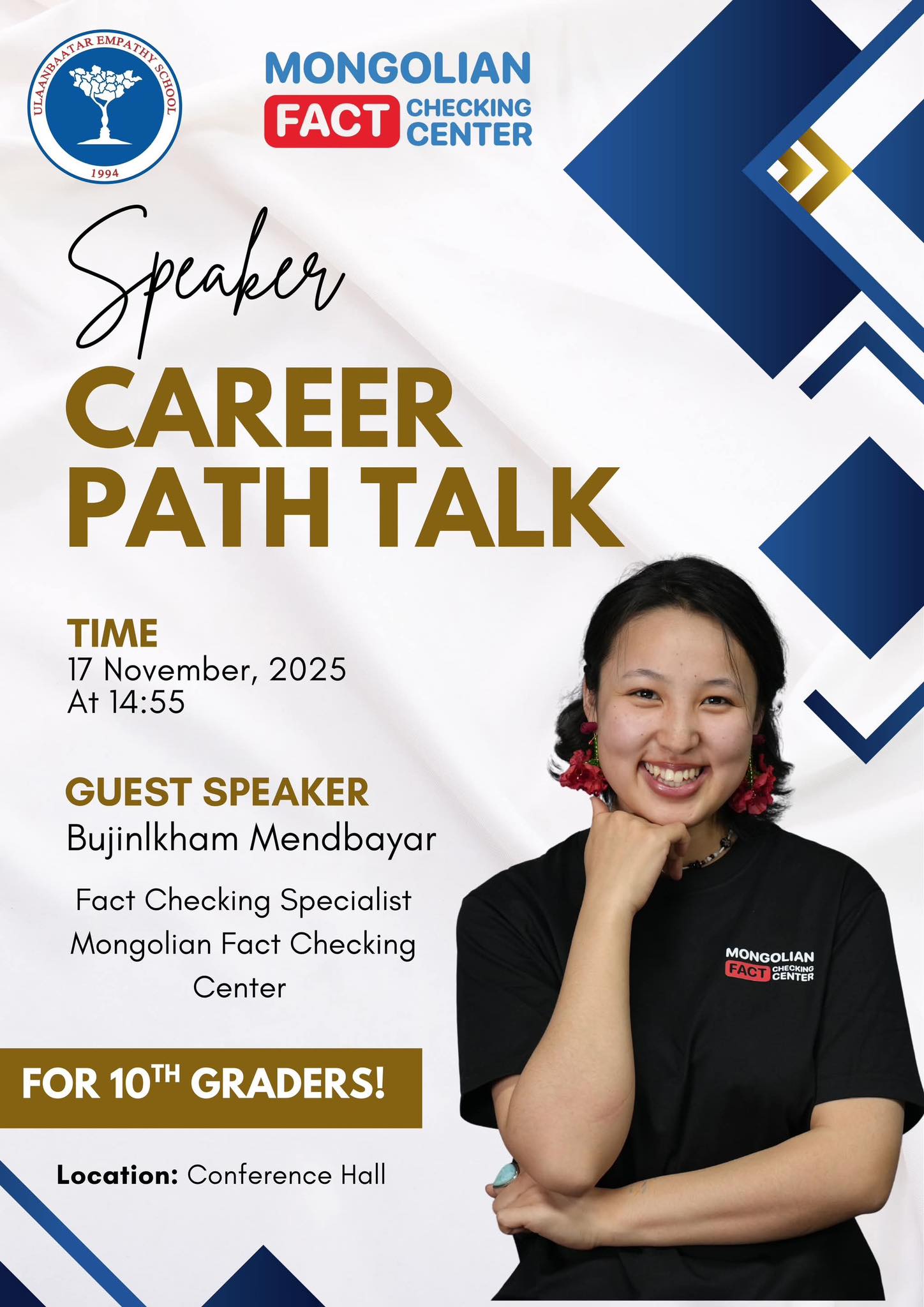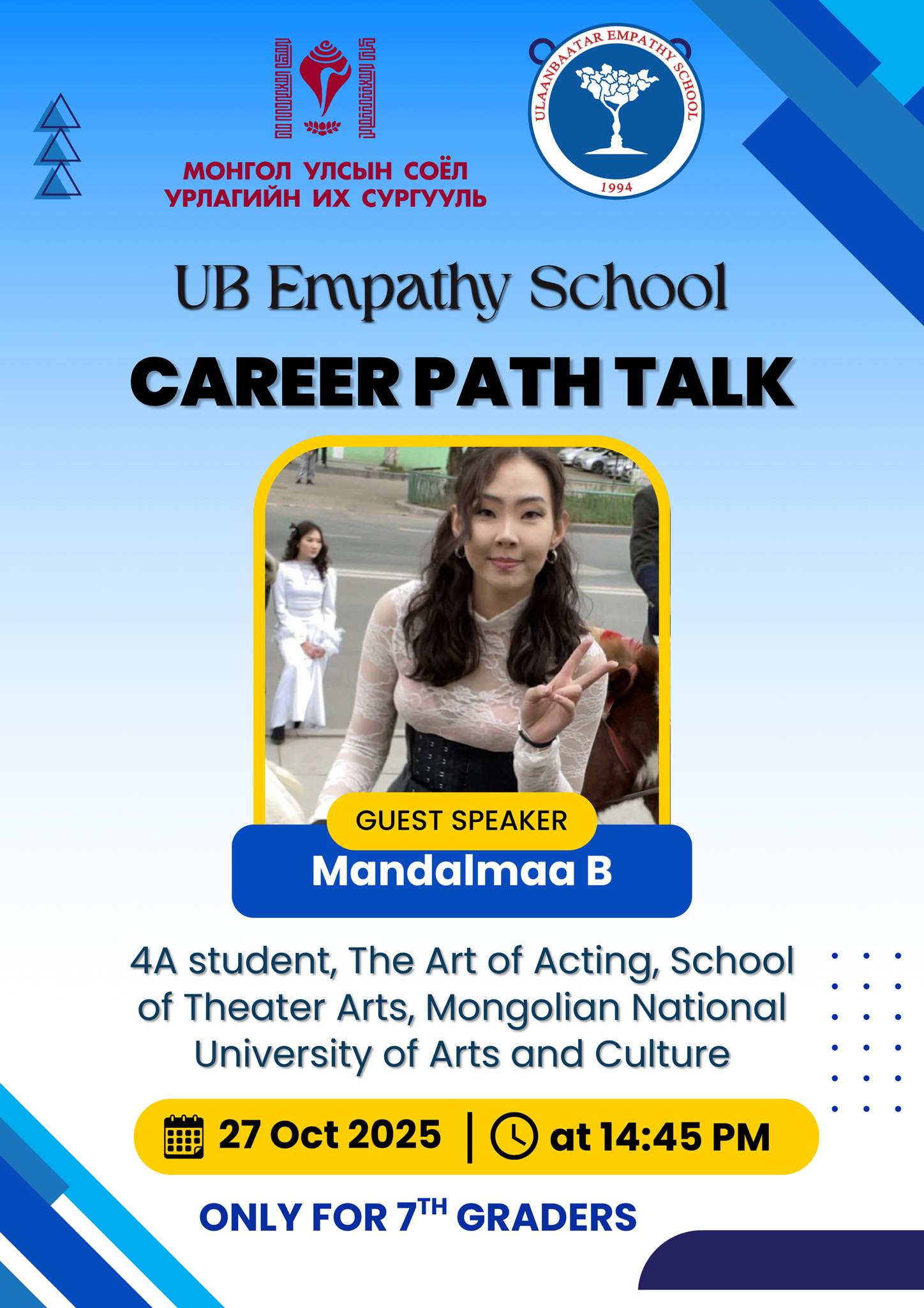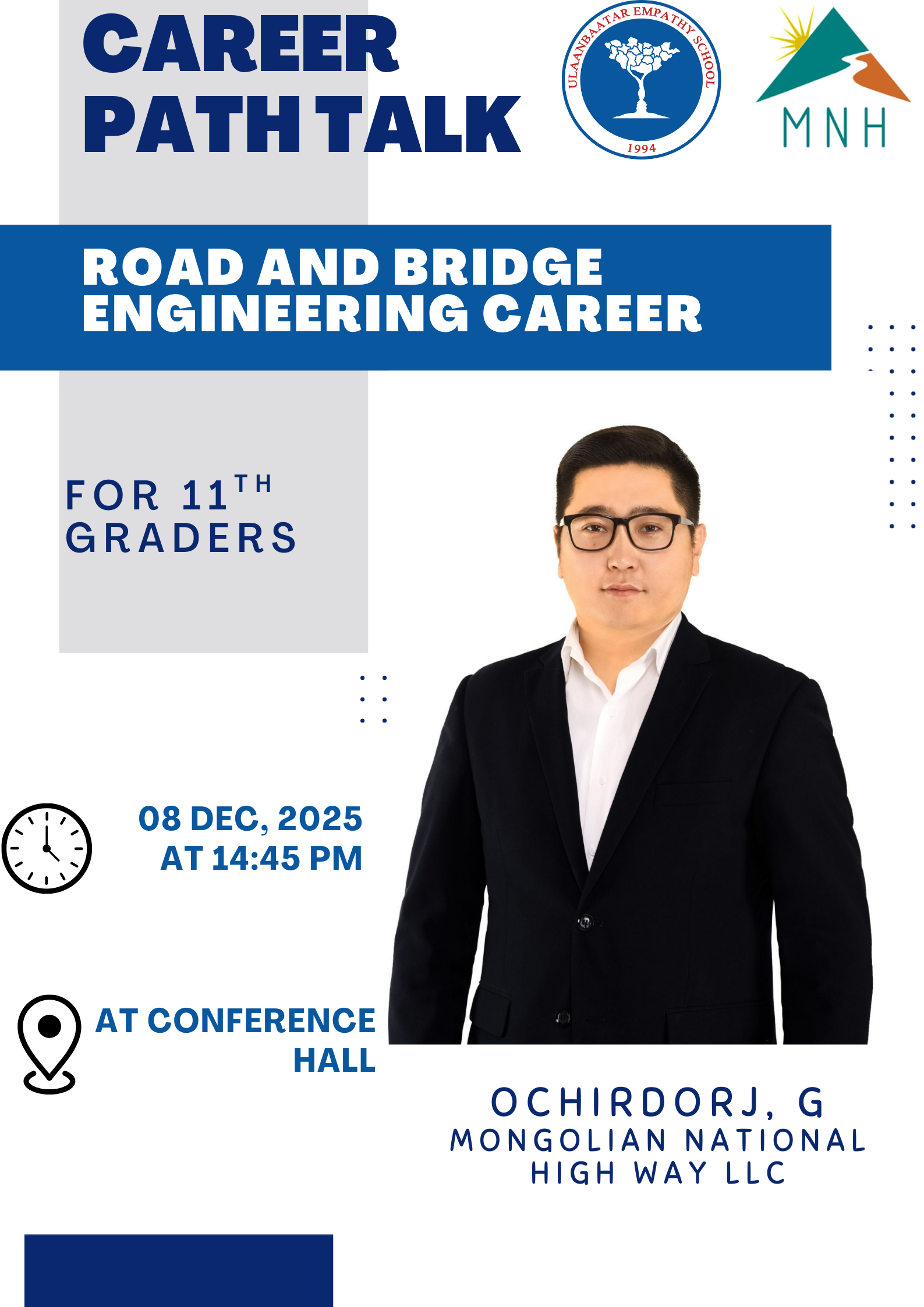 Карьерийн зөвлөхүүдийн зорилго: Бид сурагчдын ур чадвар, зан төлвийн онцлогийг мэргэжлийн сэтгэлзүйн сорилын аргаар тодорхойлон, үр дүнд суурилсан хувь хүний зөвлөгөө өгч ажилладаг. Энэхүү зөвлөгөөг танилцах дадлага, мэргэжлийн дадлага болон сайн дурын ажилтай уялдуулан хэрэгжүүлснээр сурагчид ажлын байрны бодит орчин, үйл явцтай танилцах боломж бүрддэг. Манай цогц хөтөлбөрийн зорилго нь сурагчдыг өөрийн авьяас, сонирхол, онцлогт нийцсэн мэргэжлийг шинжлэх ухааны үндэслэлтэйгээр, оновчтой сонгоход нь зөвлөн чиглүүлэхэд оршино.